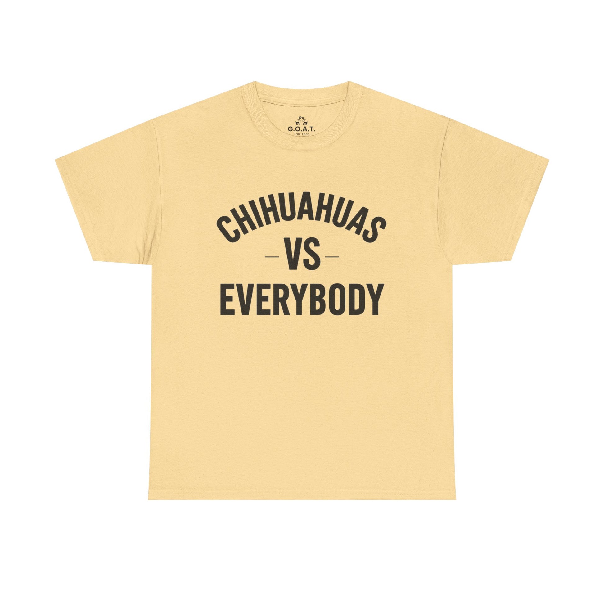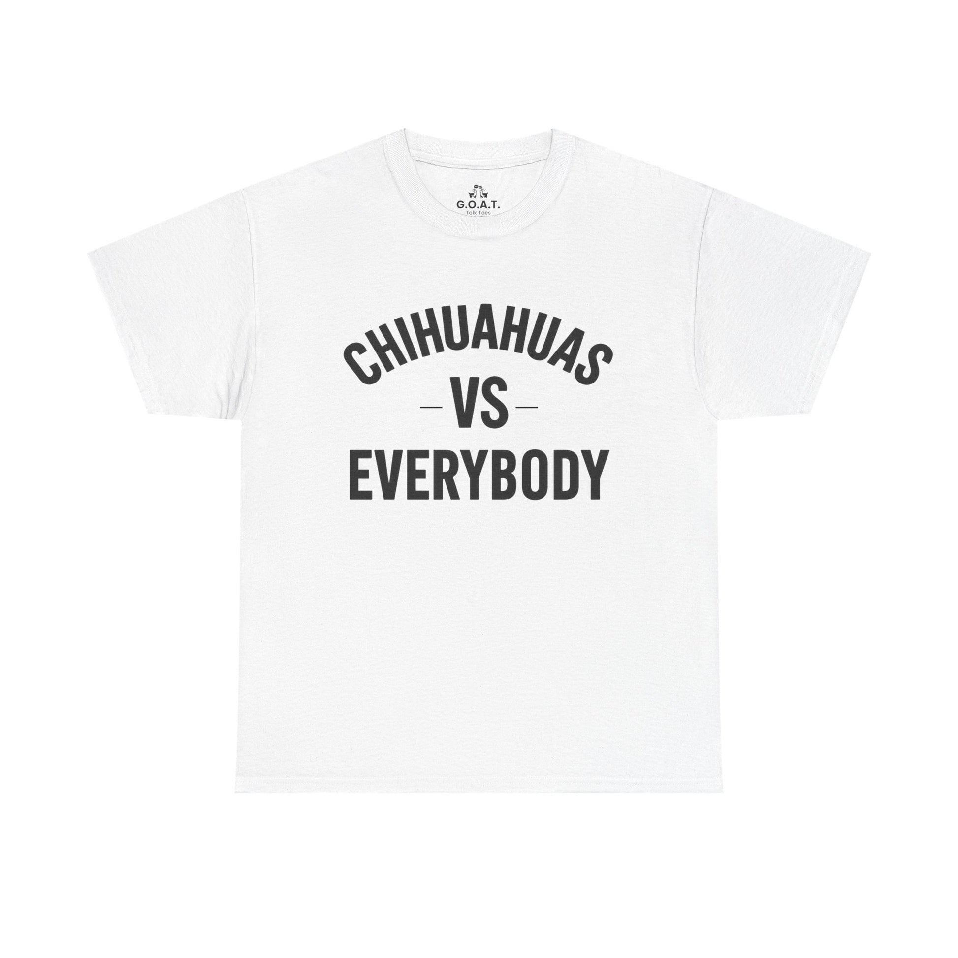 Show the world how much you love your mighty little companion with this Chihuahua vs Everybody tee from the G.O.A.T. Talk Tees ILMD (I Love My Dog) Series.
