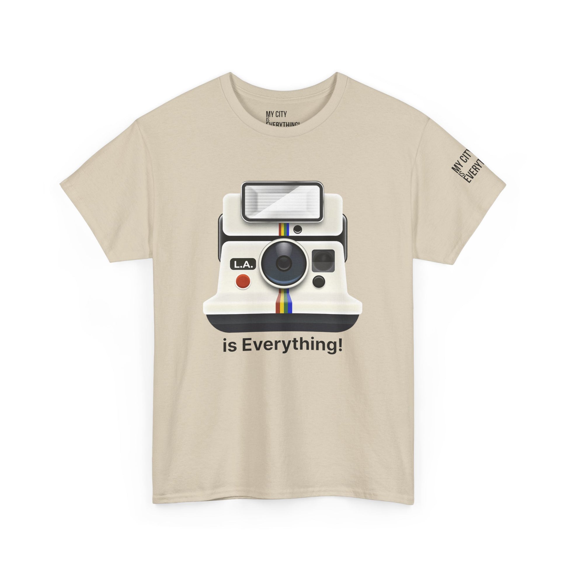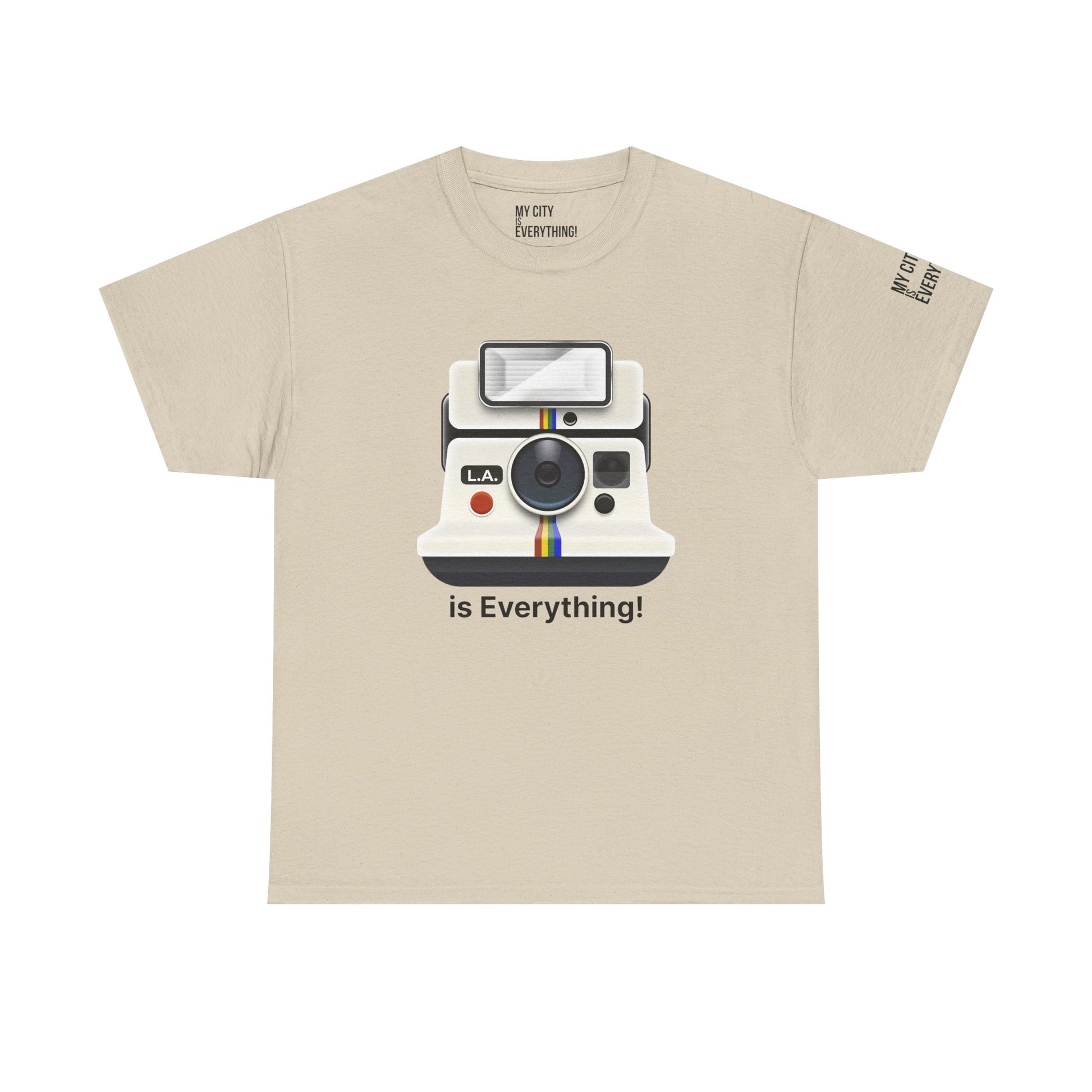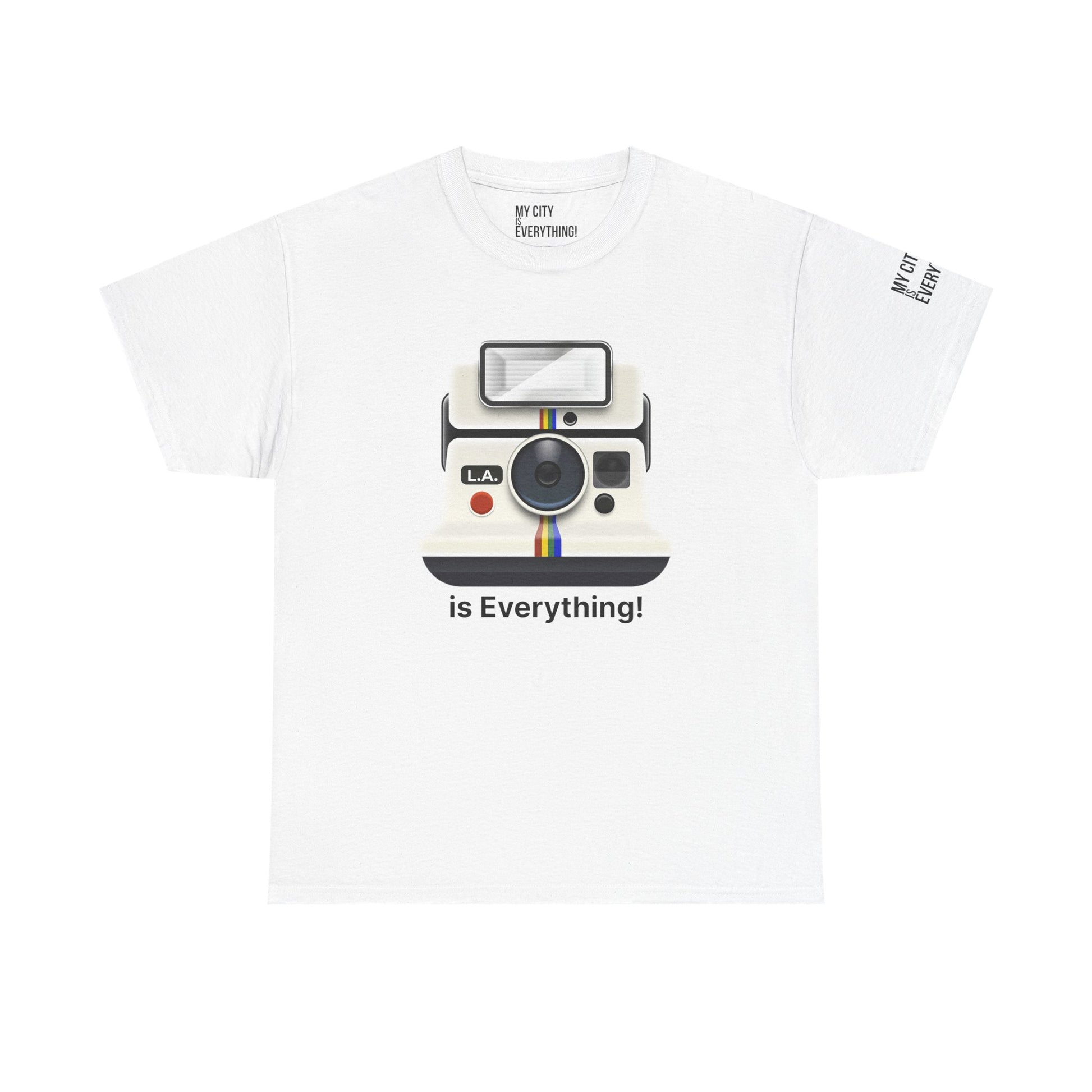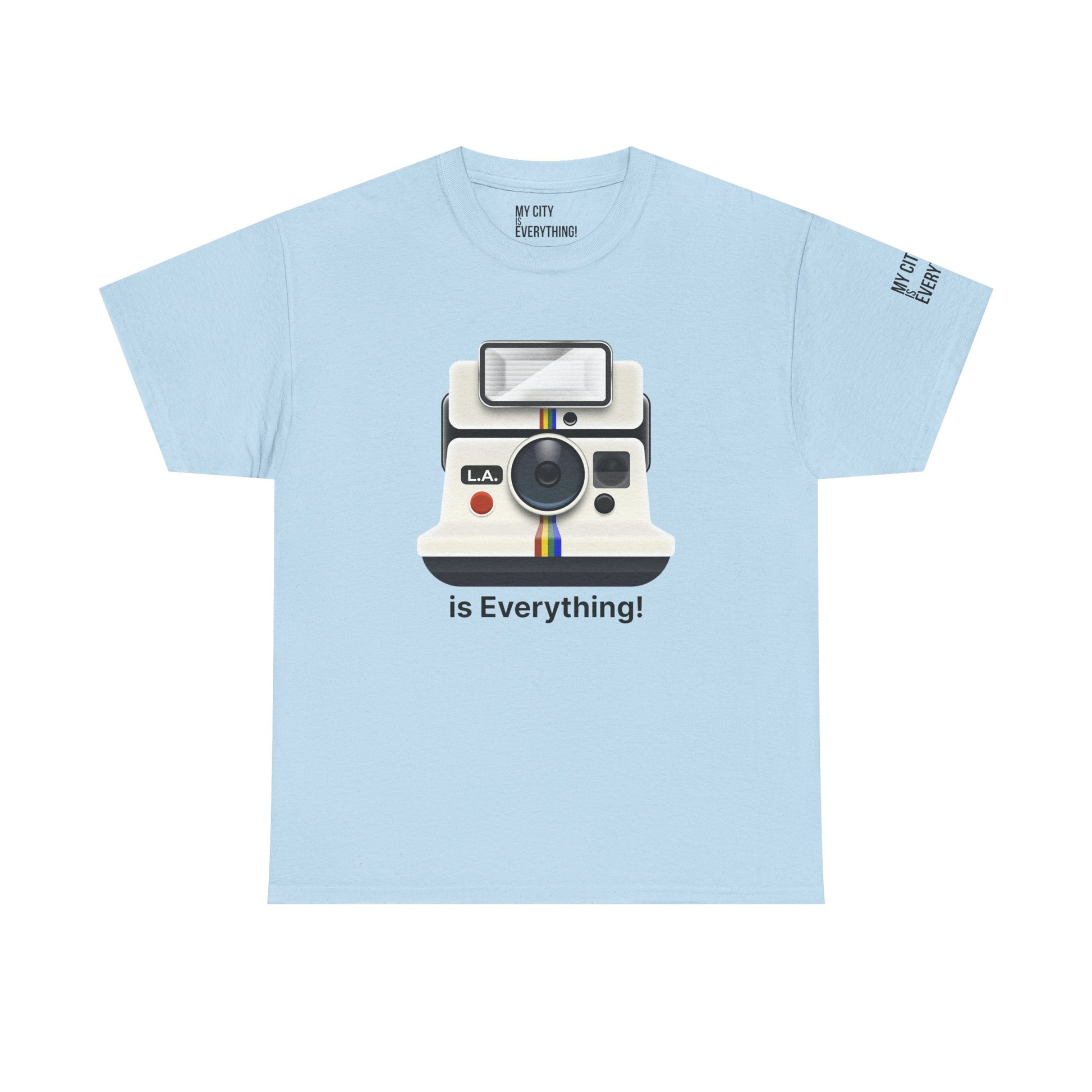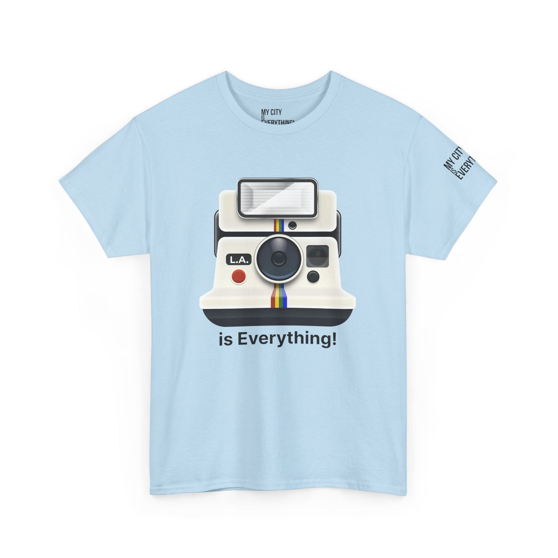 Instantly iconic. This vintage-style tee blends retro tech with West Coast pride, featuring a classic Polaroid-style camera marked “L.A.” and stamped with the bold is Everything! message. Whether you're snapping flicks on Fairfax or catching golden hour in Venice, this shirt is made for the creators and curators of Los Angeles culture. A must-have from the My City is Everything! collection — where city pride meets timeless style.