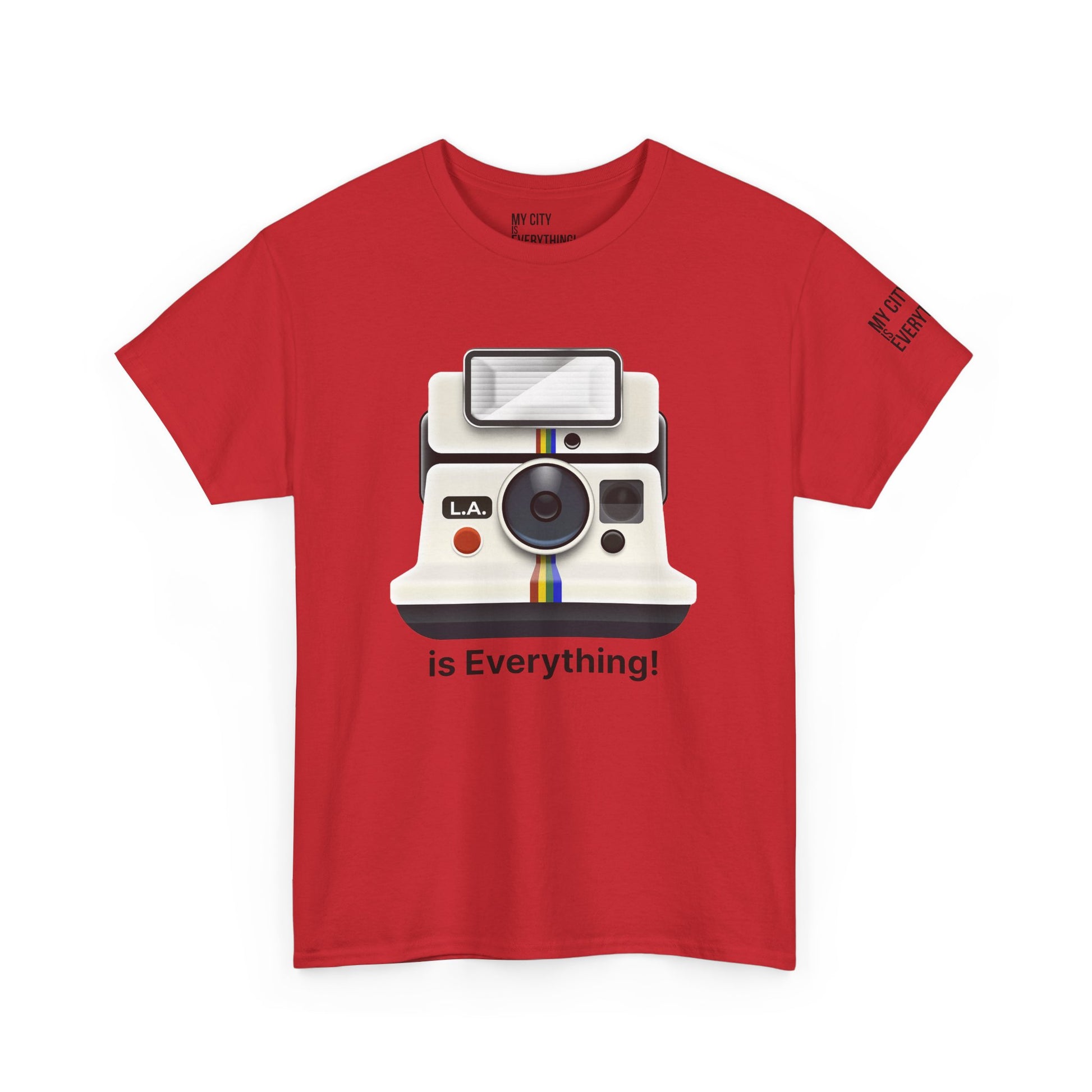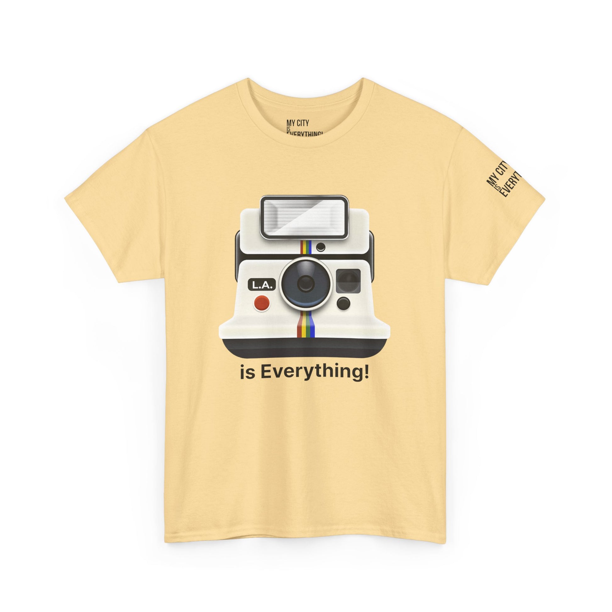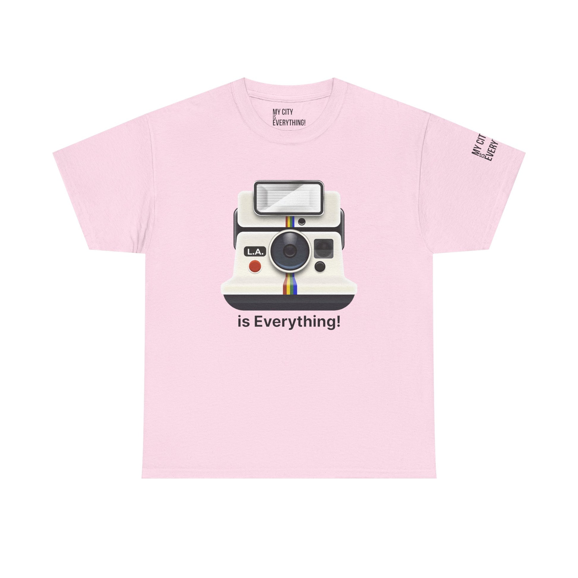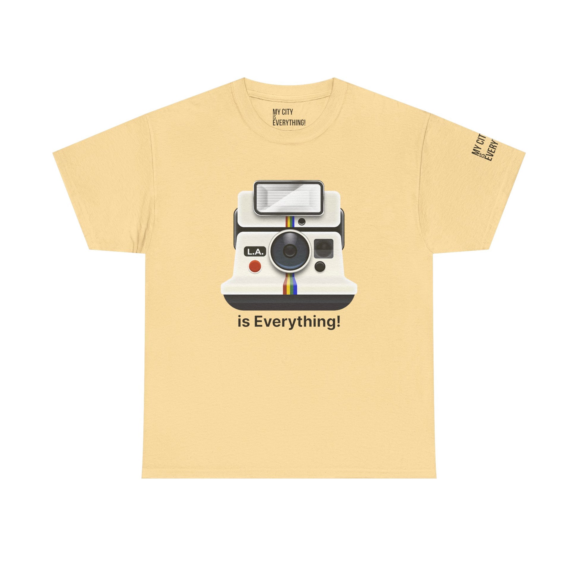 Instantly iconic. This vintage-style tee blends retro tech with West Coast pride, featuring a classic Polaroid-style camera marked “L.A.” and stamped with the bold is Everything! message. Whether you're snapping flicks on Fairfax or catching golden hour in Venice, this shirt is made for the creators and curators of Los Angeles culture. A must-have from the My City is Everything! collection — where city pride meets timeless style.