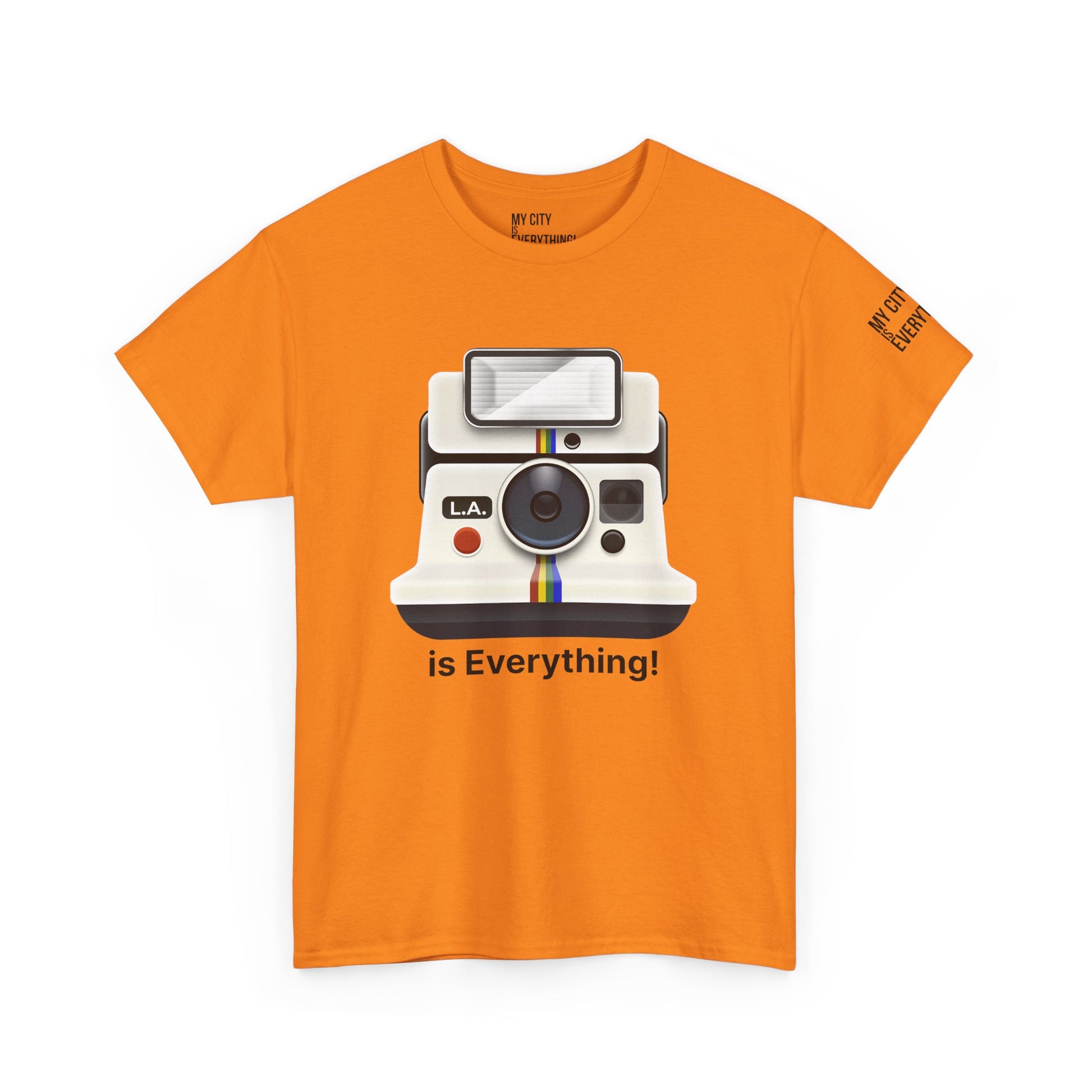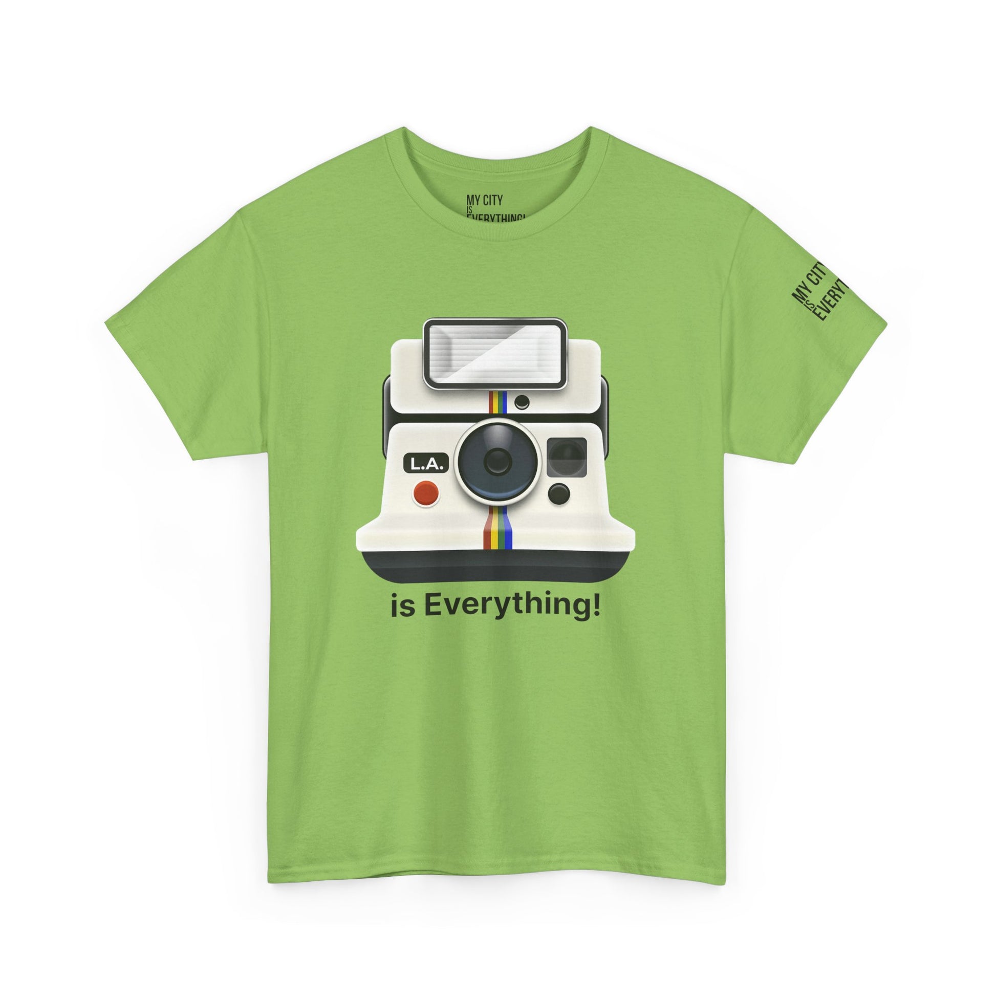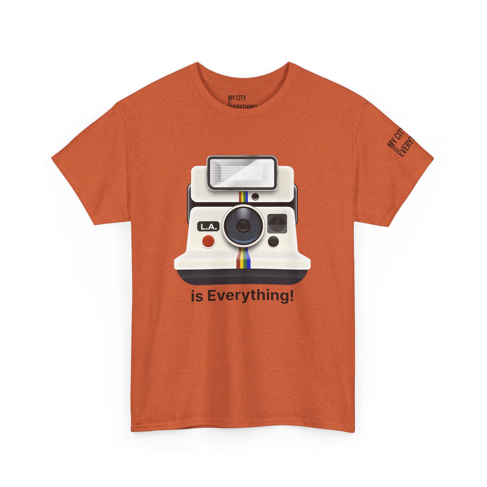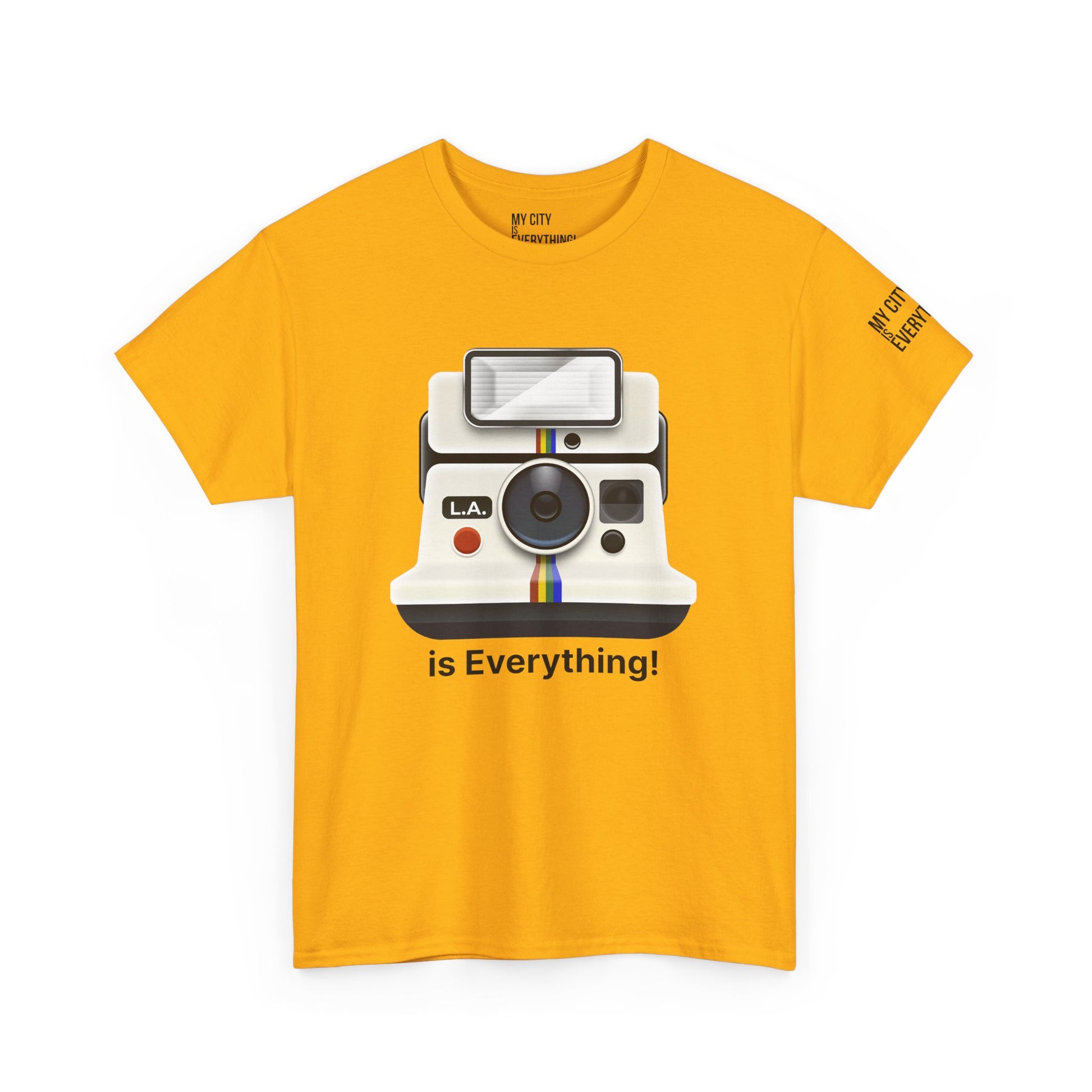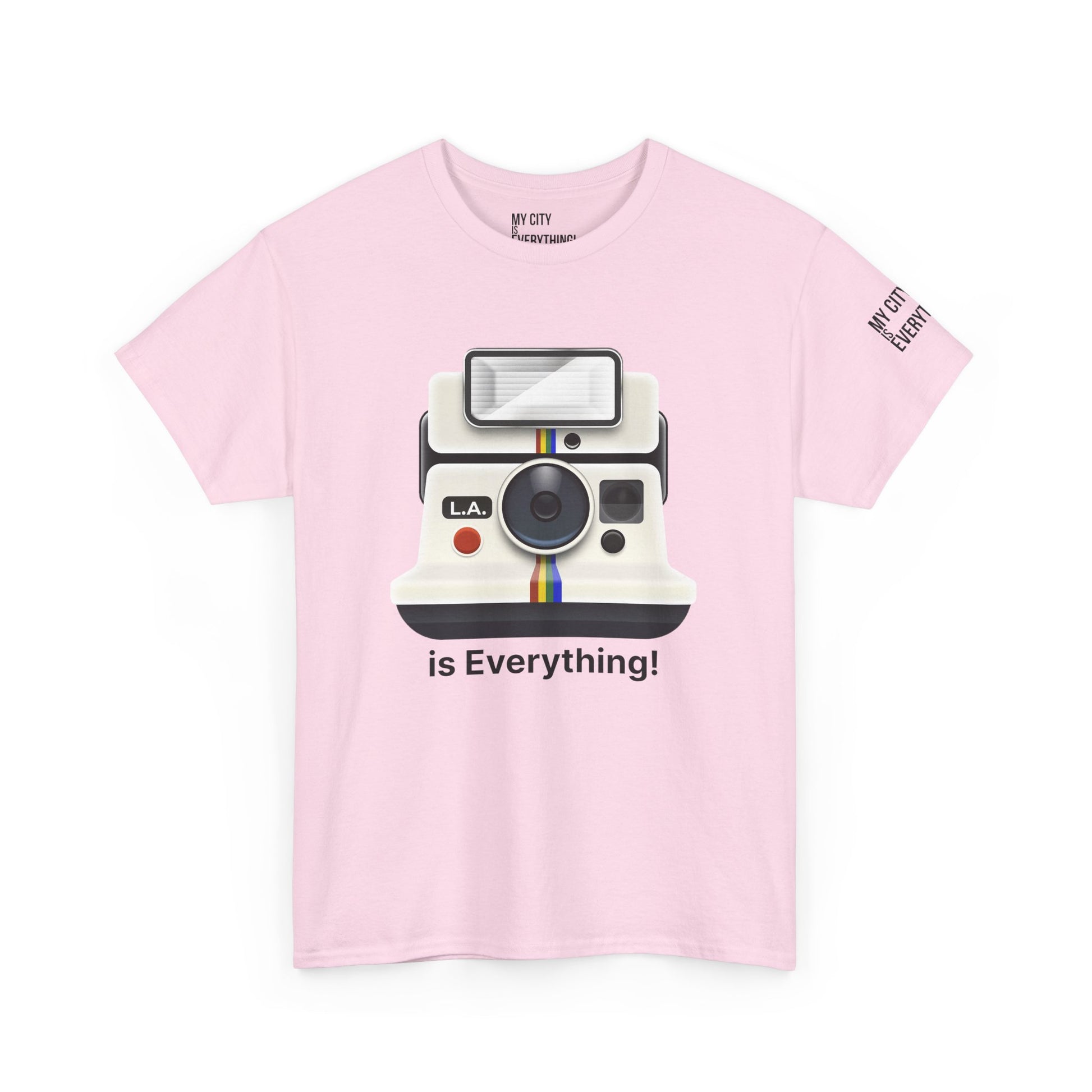 Instantly iconic. This vintage-style tee blends retro tech with West Coast pride, featuring a classic Polaroid-style camera marked “L.A.” and stamped with the bold is Everything! message. Whether you're snapping flicks on Fairfax or catching golden hour in Venice, this shirt is made for the creators and curators of Los Angeles culture. A must-have from the My City is Everything! collection — where city pride meets timeless style.