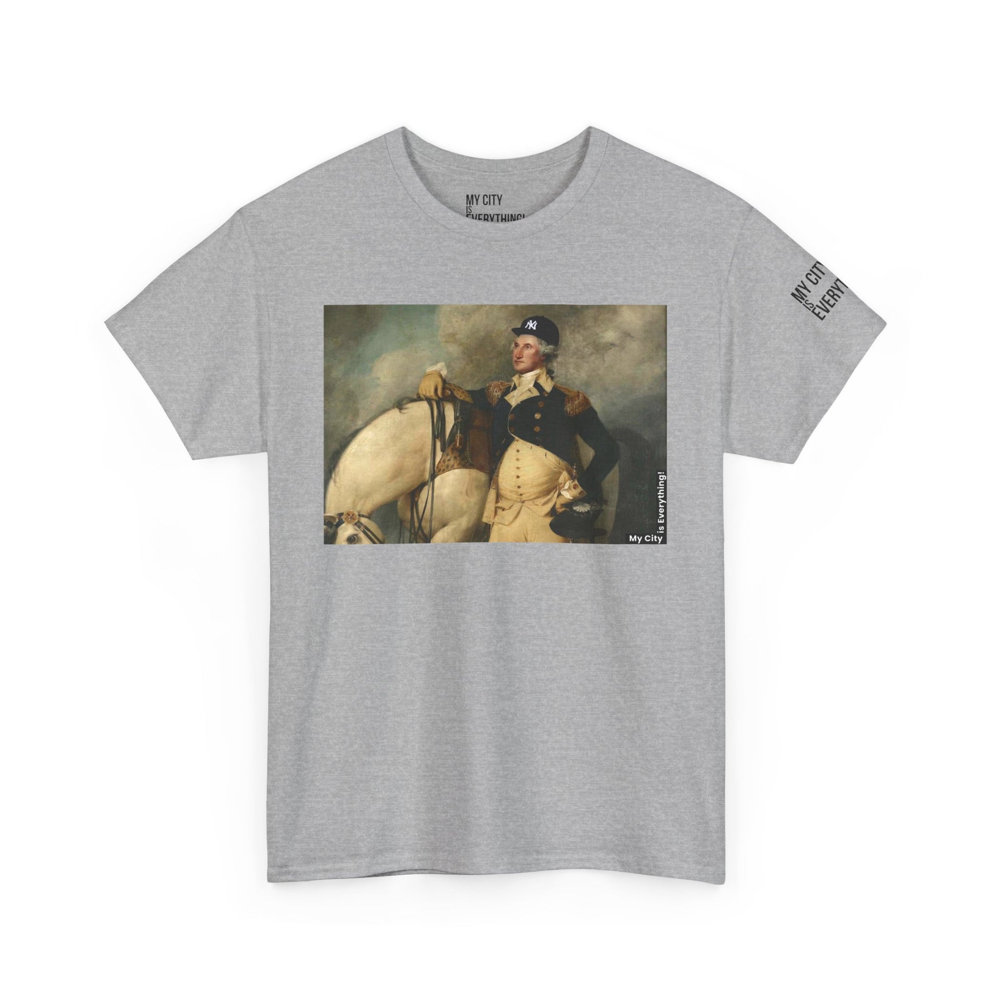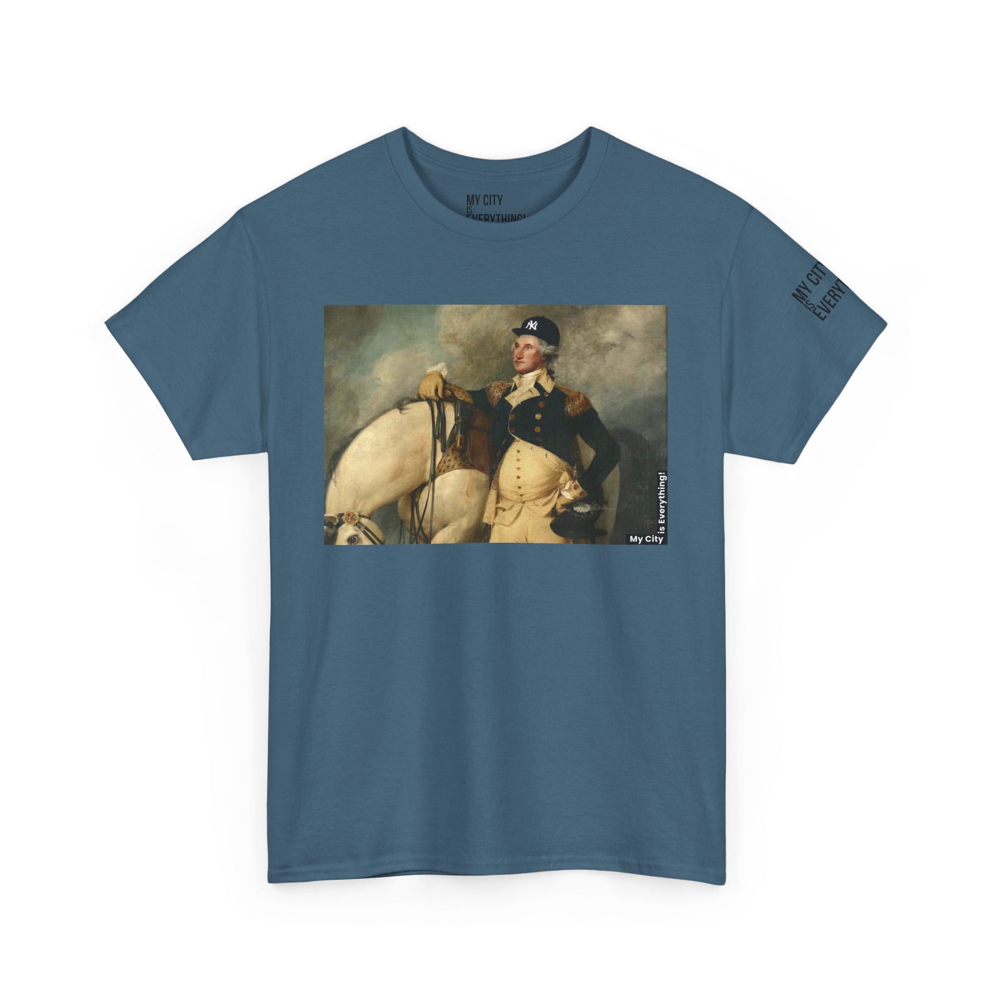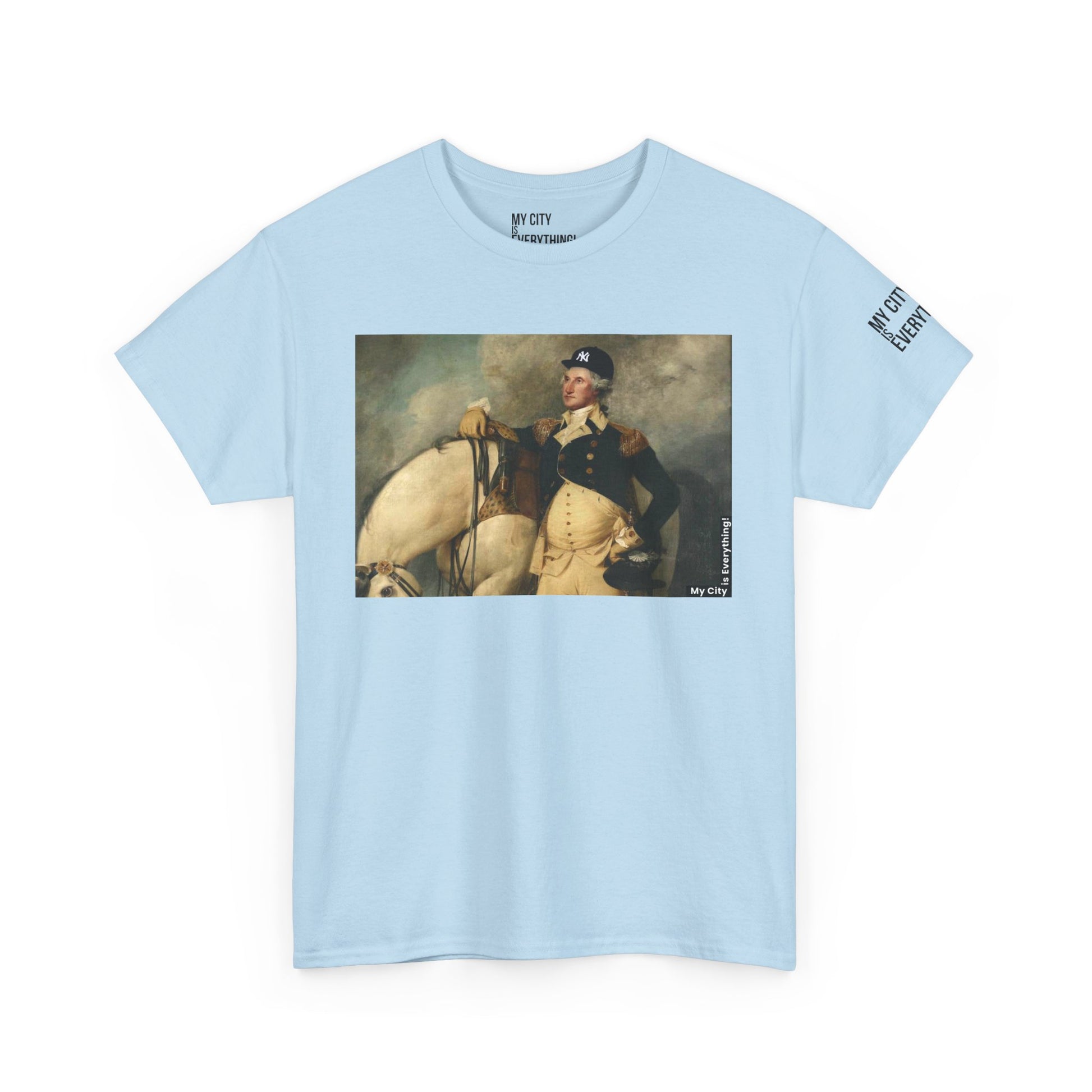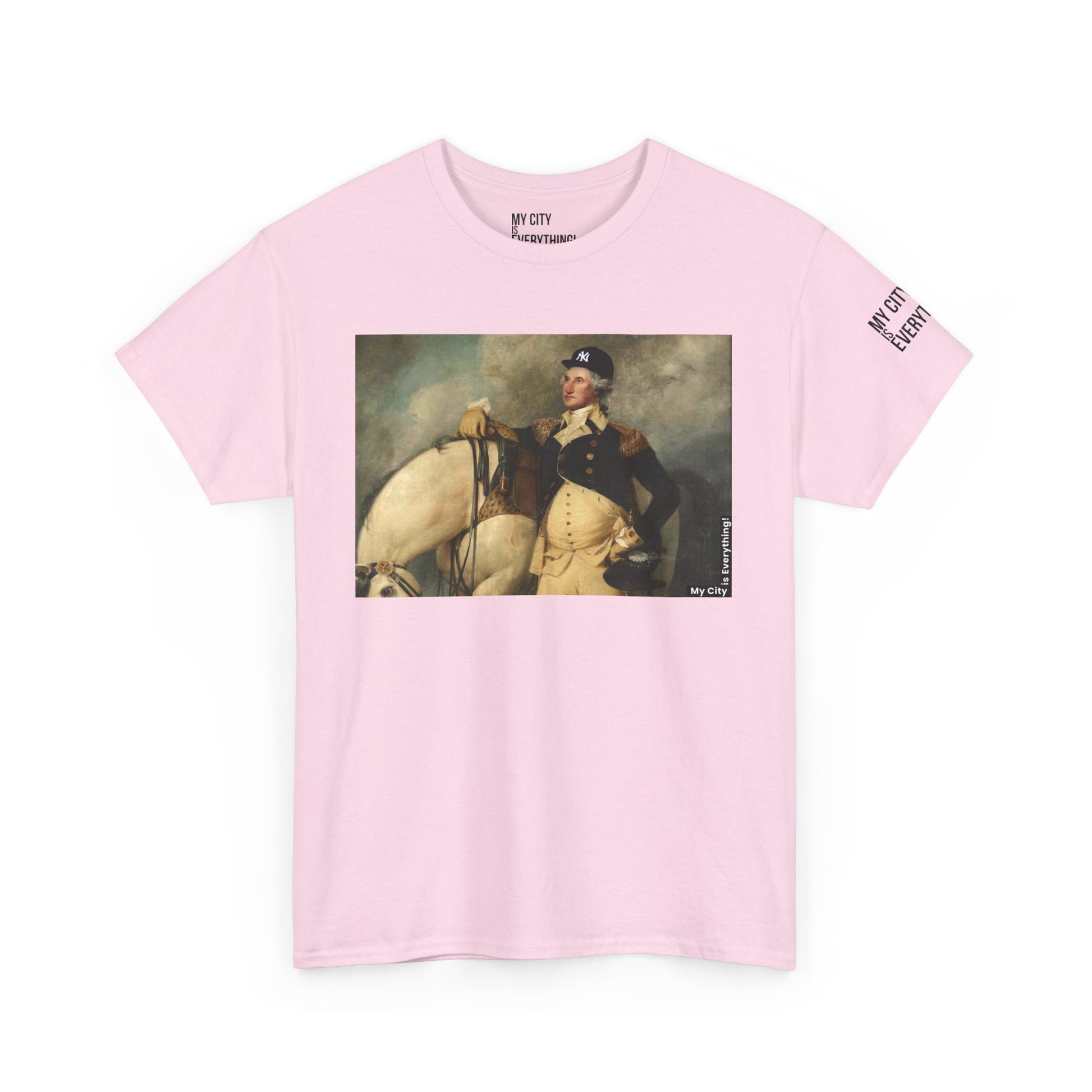 America’s first icon meets a modern legend. This tee blends classic portraiture with street-savvy style as George Washington rocks a New York Yankee hat. A bold mashup of history and hometown pride—this shirt salutes freedom, fashion, and the Bronx all at once.