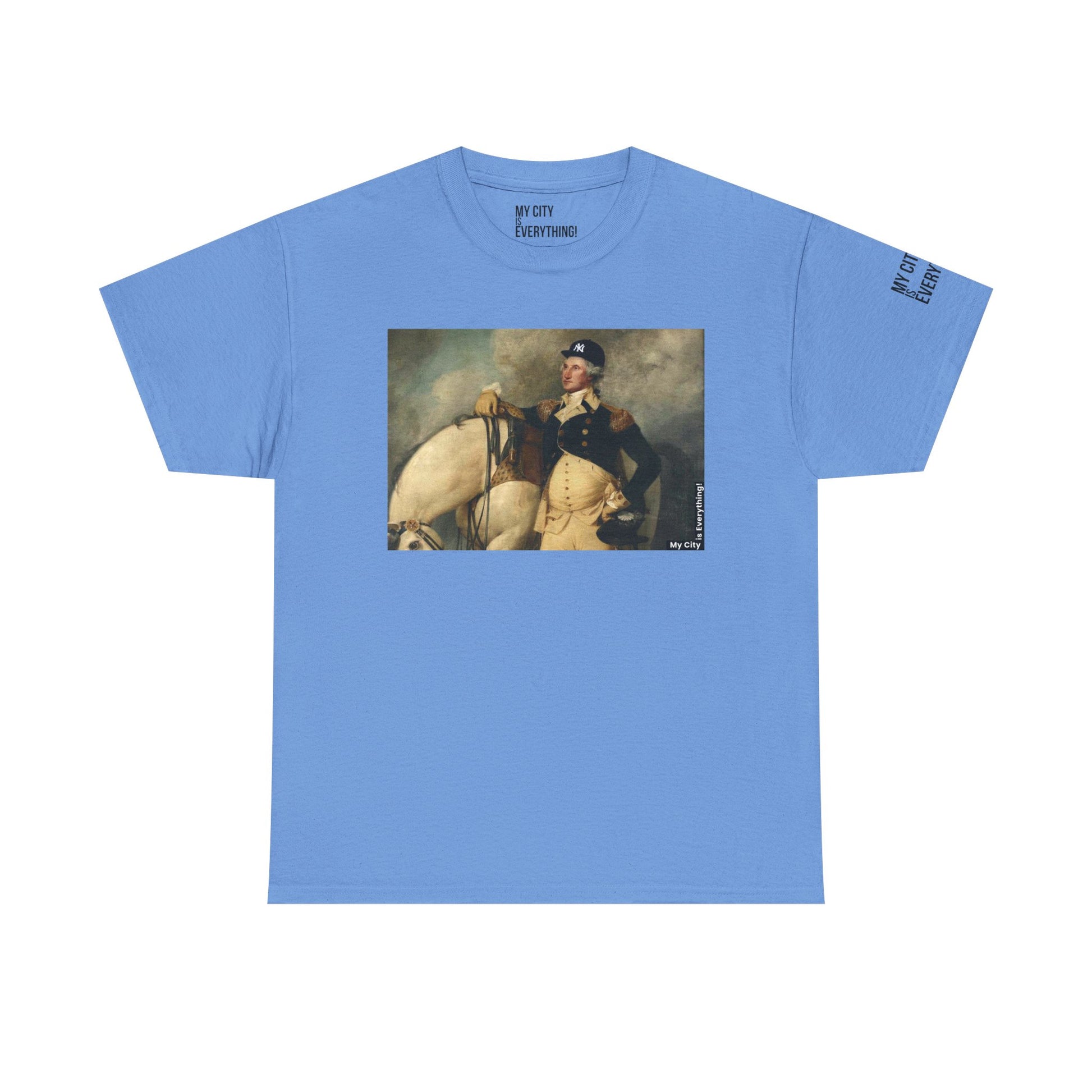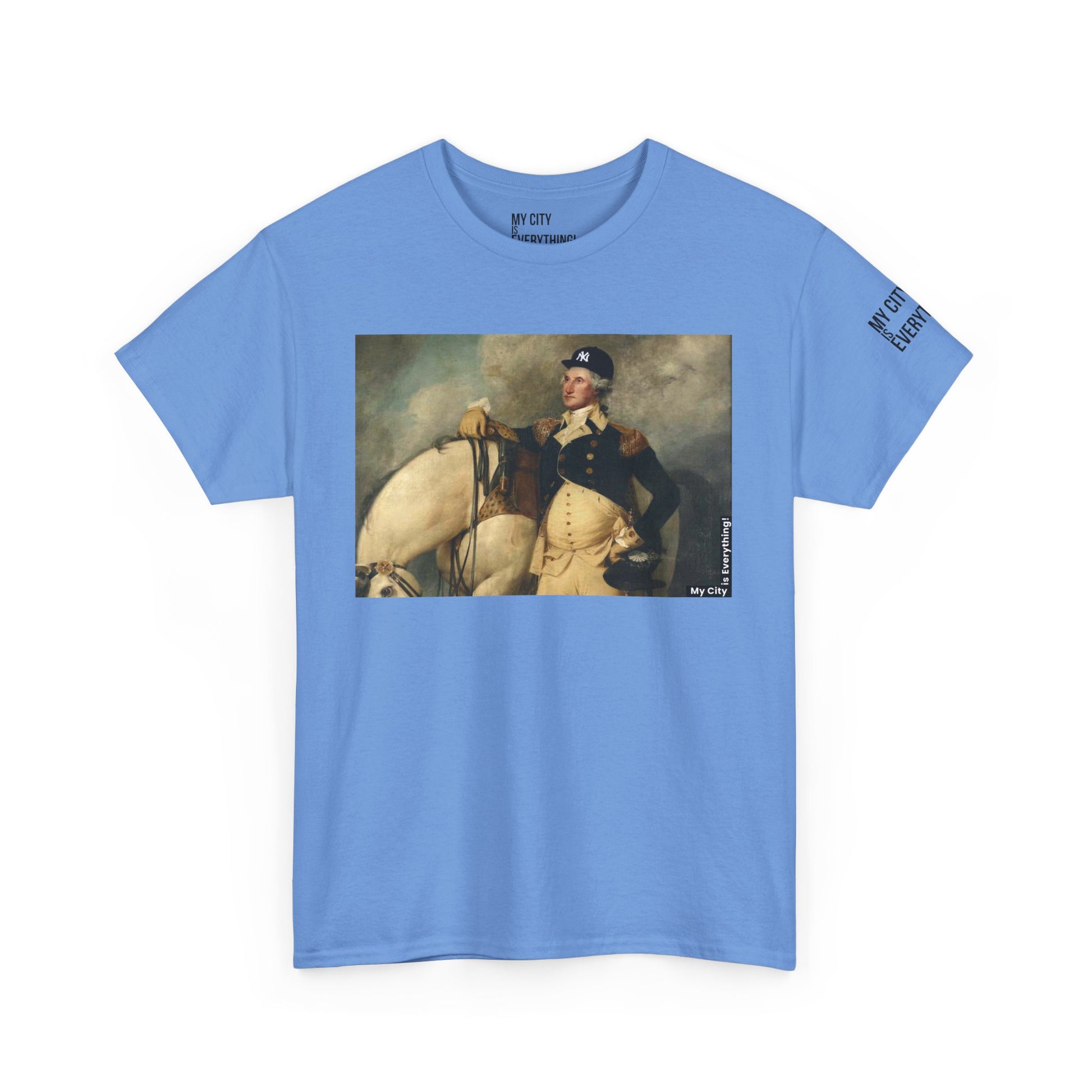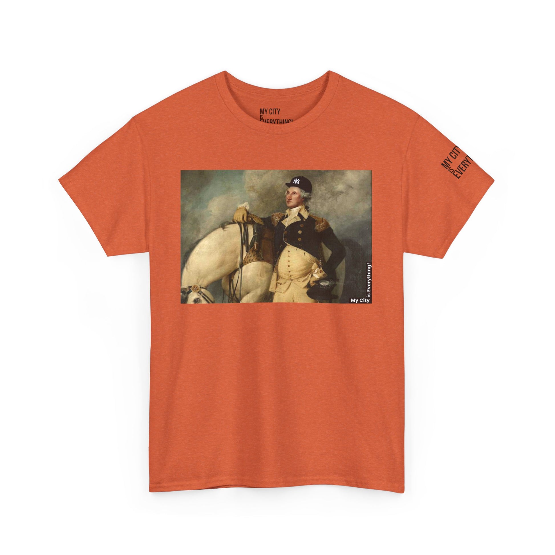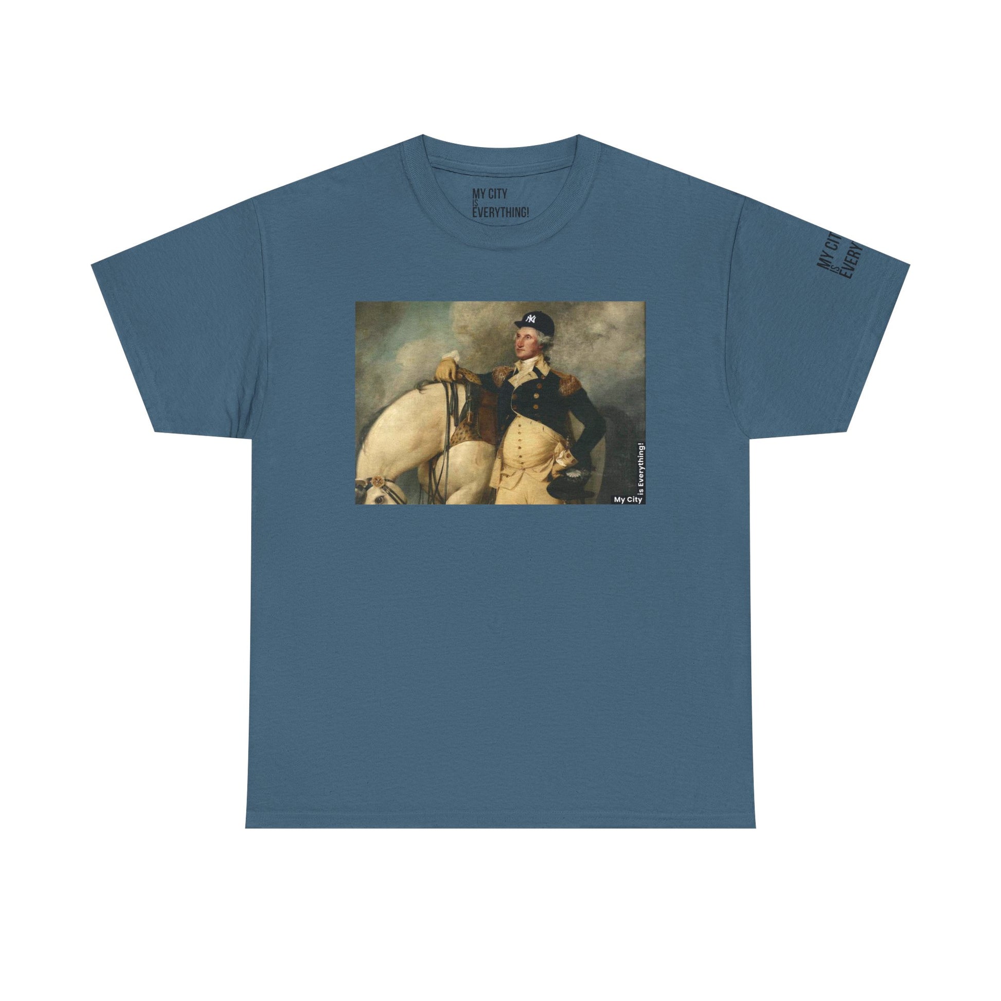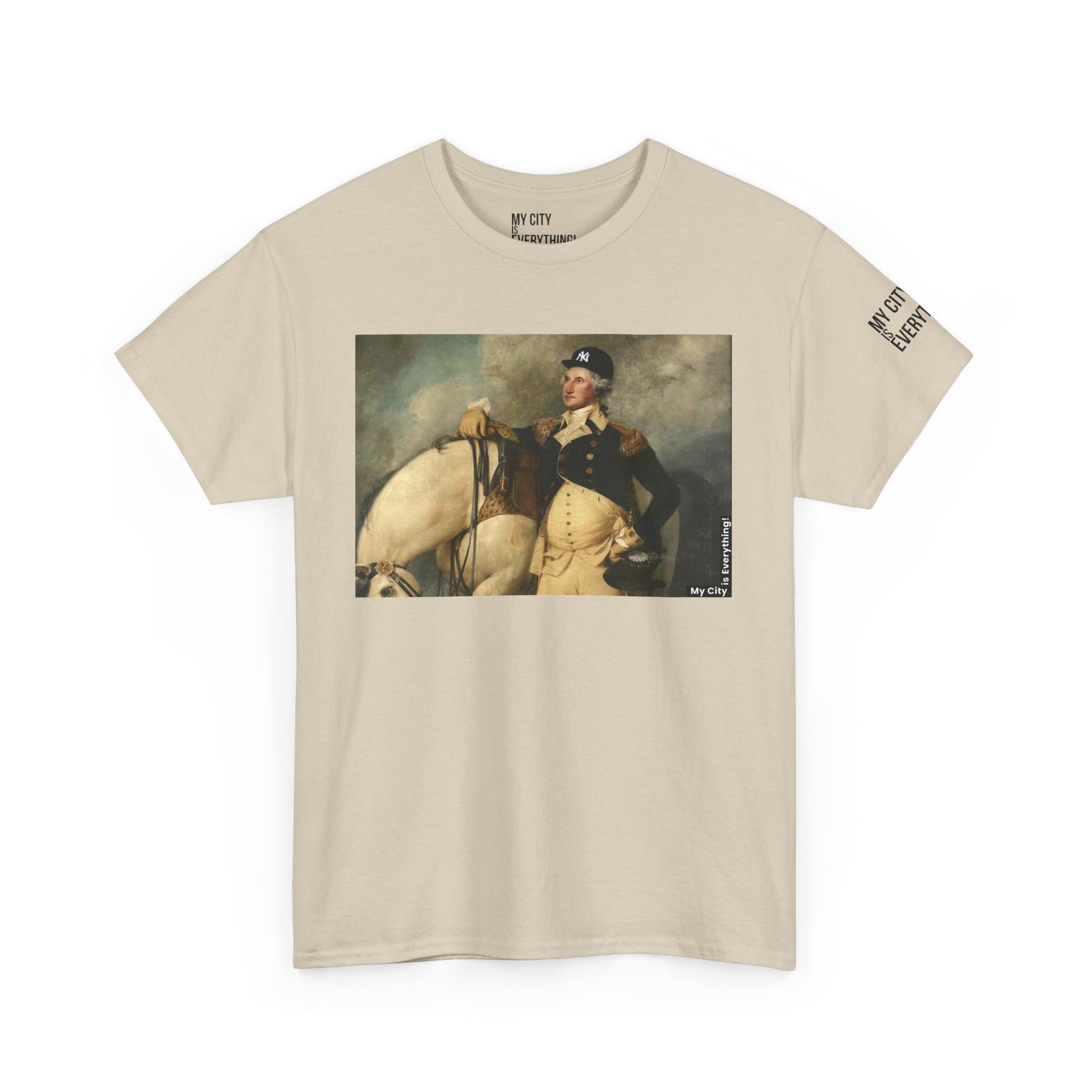 America’s first icon meets a modern legend. This tee blends classic portraiture with street-savvy style as George Washington rocks a New York Yankee hat. A bold mashup of history and hometown pride—this shirt salutes freedom, fashion, and the Bronx all at once.