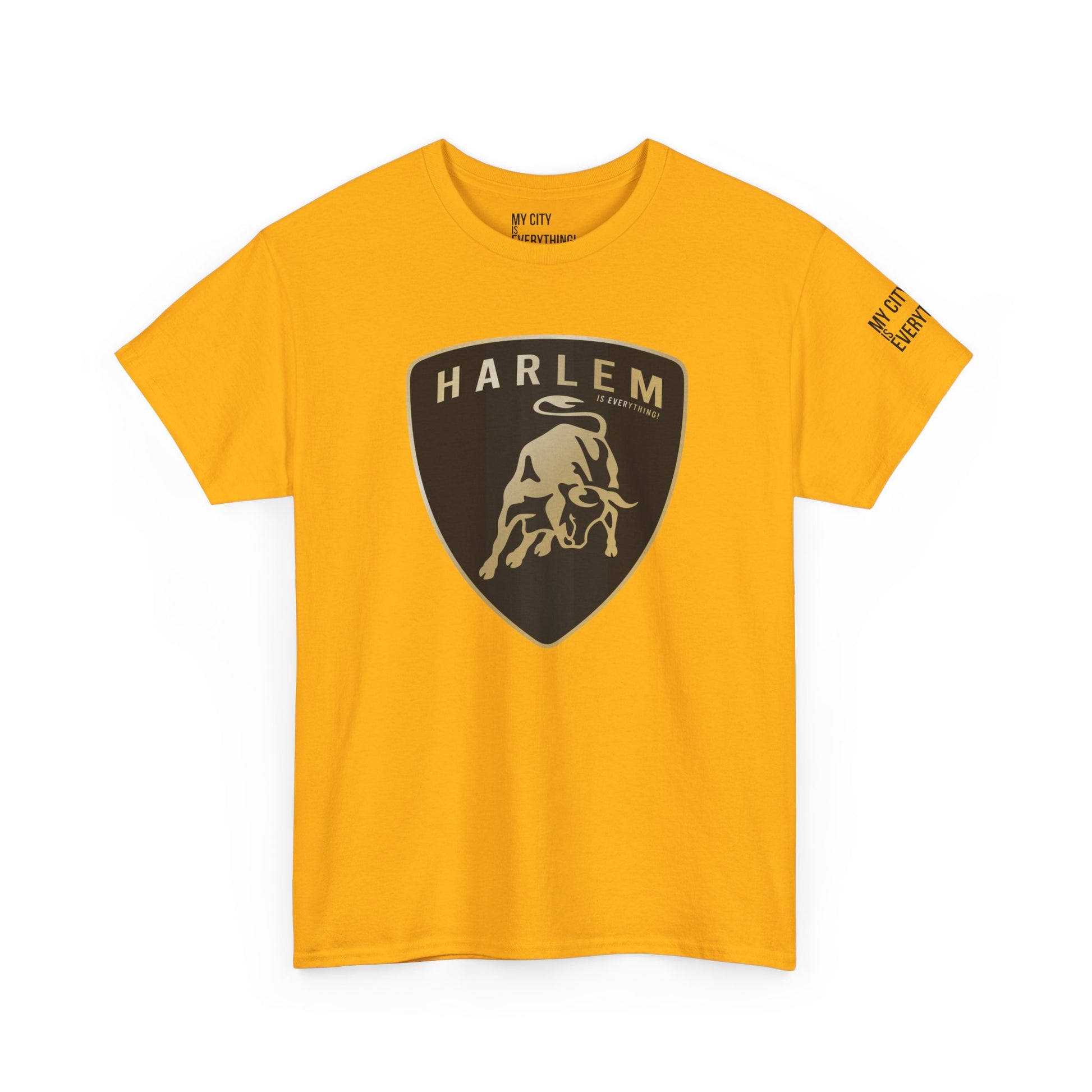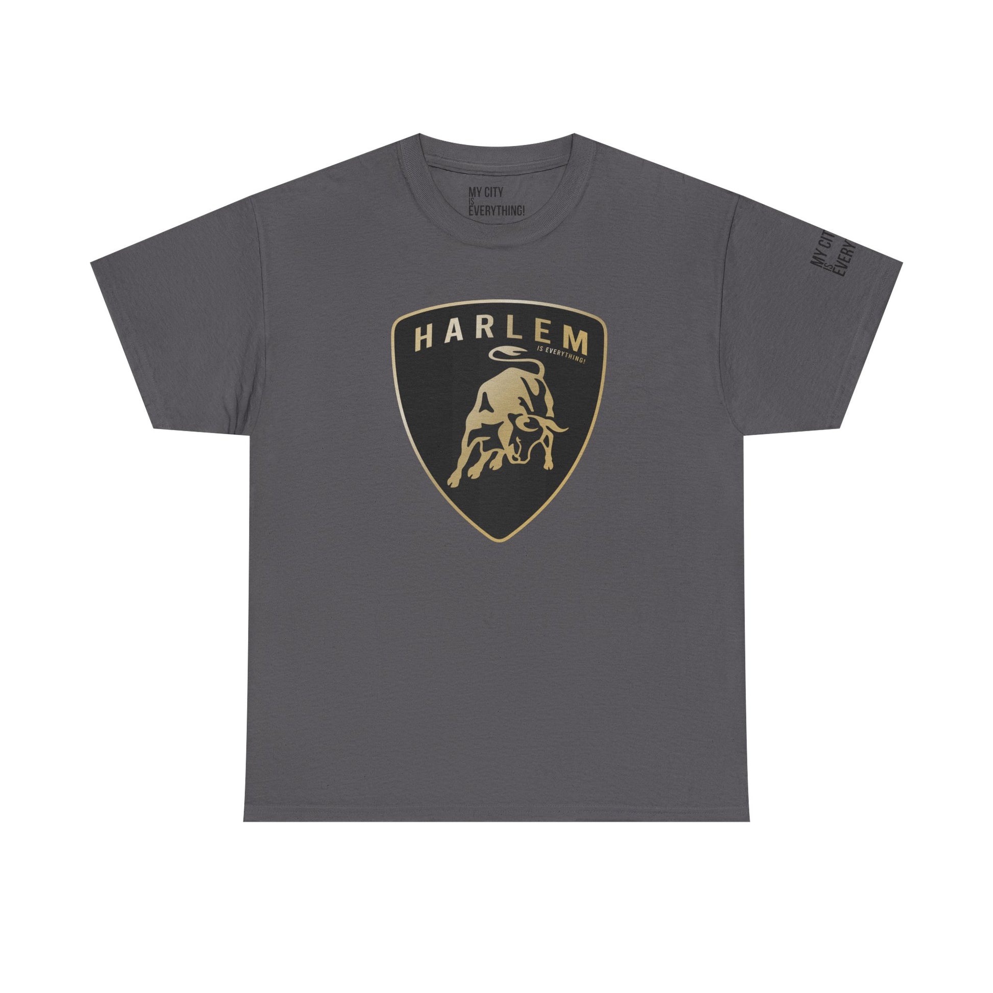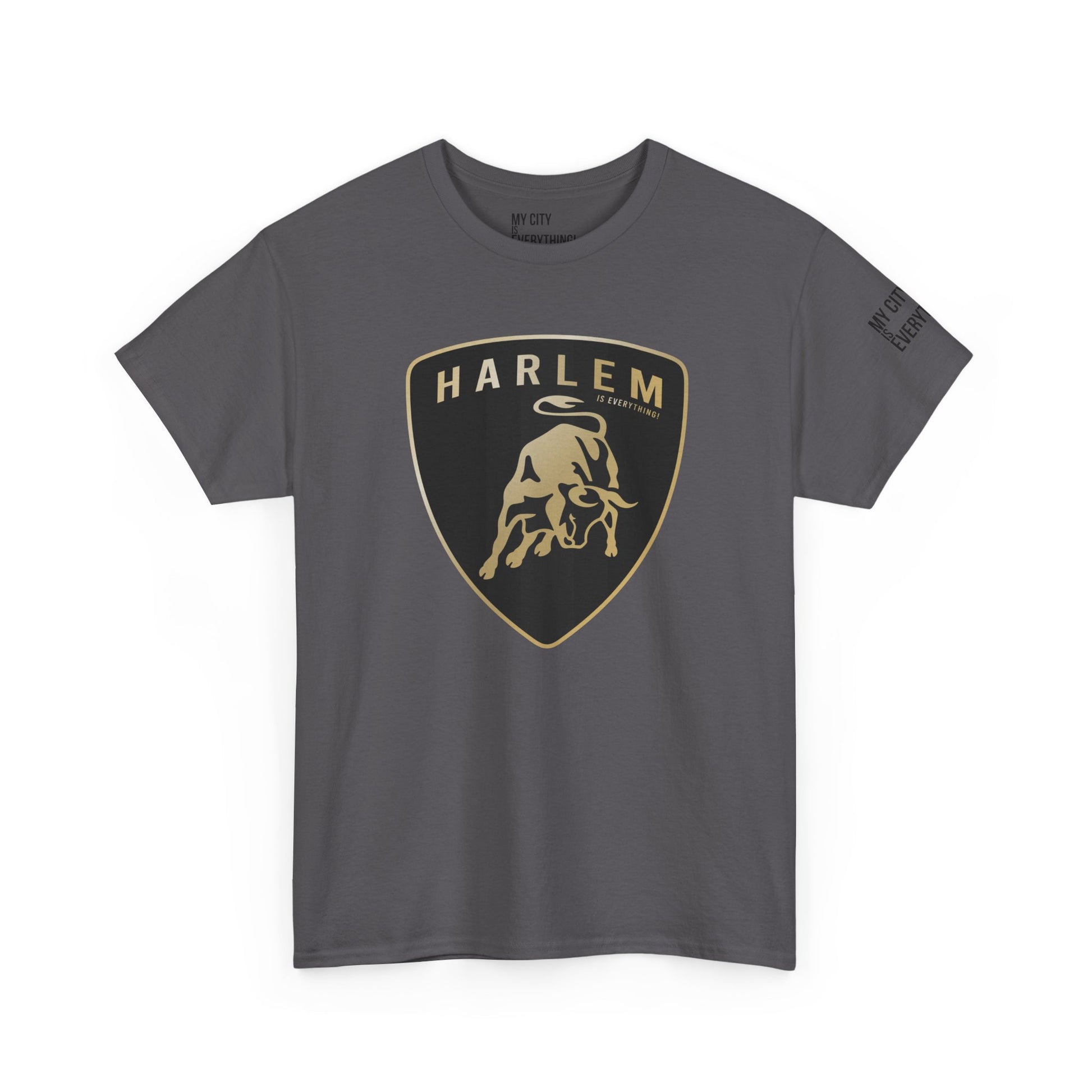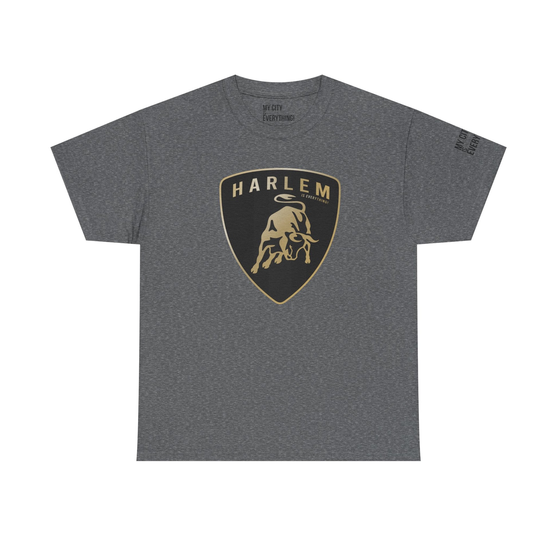 This Harlem tee fuses uptown energy with exotic Lambo design—remixing a luxury car emblem into a bold, street-certified badge of honor. The bull charges forward with Harlem hustle behind it, stamped with “...is Everything” because Harlem is always first off the line and never backs down.